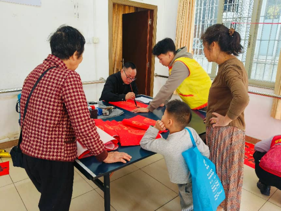 为弘扬新春民俗文化,促进残健共融,普及社区基金公益理念,近日,钟村街“双百工程”社工站联合钟村社区、钟村街禁毒办、钟村街工疗站、番禺区第五人民医院等多方力量,共同举办钟村社区“春节福到家,春联送万家”迎新春暨慈善义卖活动。活动以多元互动形式搭建社区共建平台,传递年味与温情,吸引了110名社区居民参与。
